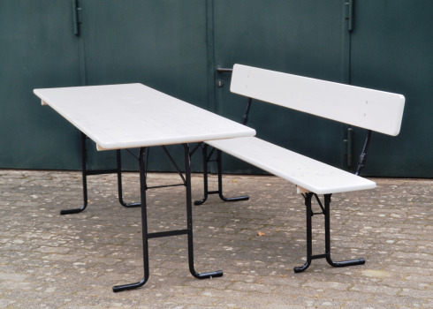 Tisch 220x70cm, Bänke mit Lehne, je Garnitur 3 € / Tag